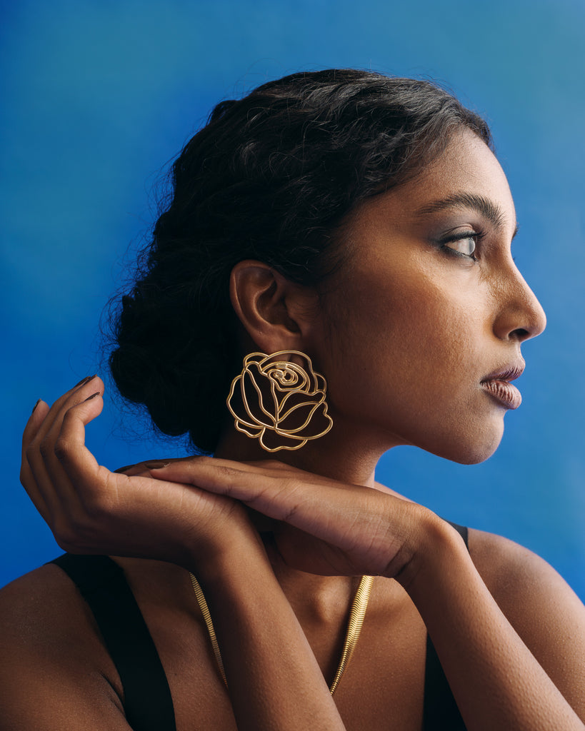 Make a statement with these unique Gulaab Earrings - featuring a line drawing of a rose in exquisite detail. Ideal for any occasion, they'll be sure to bring you compliments.