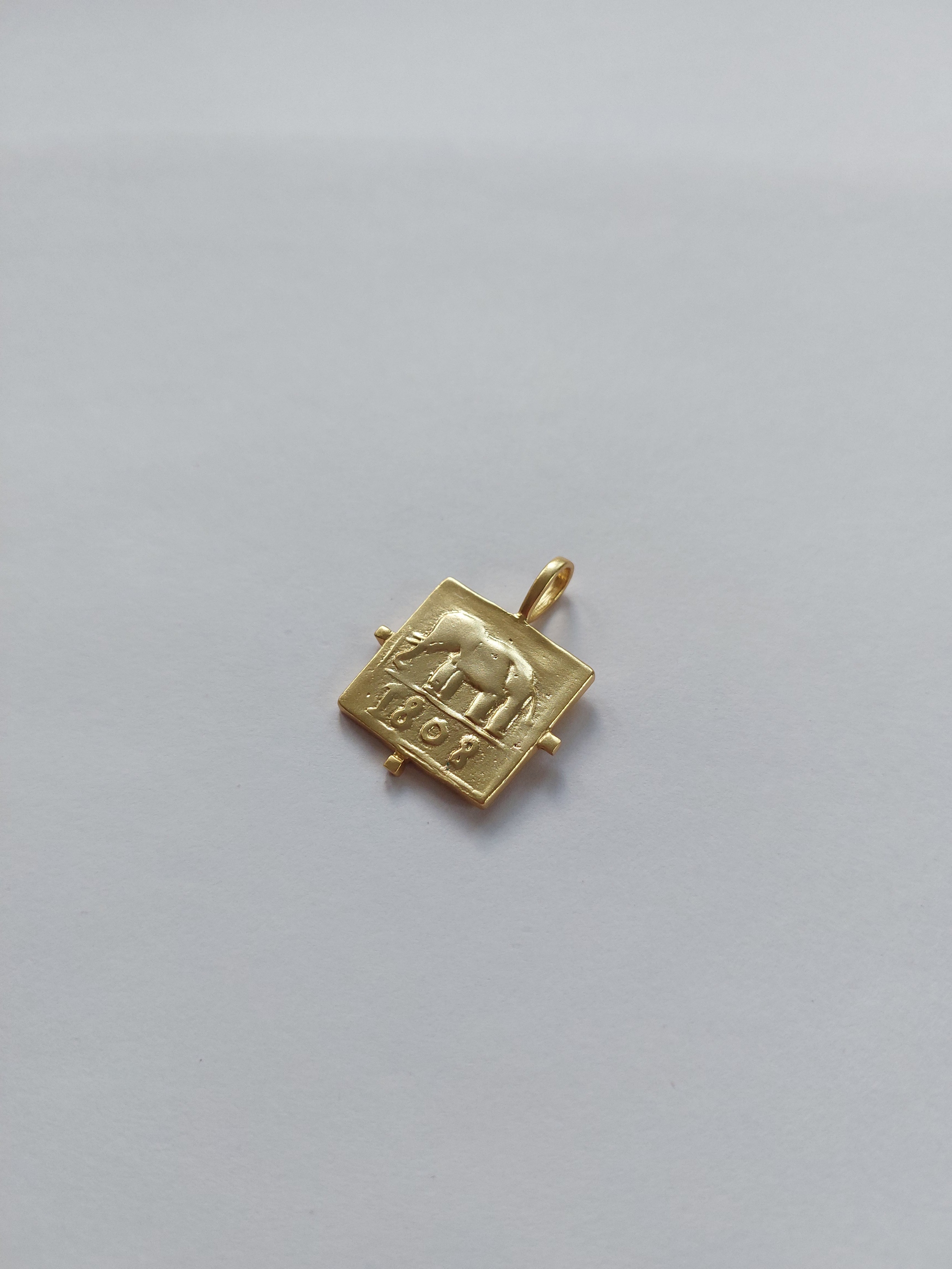 Handmade elephant coin pendant. The coin is from Ceylon, 1808 and used to be worth 24 Stivers.